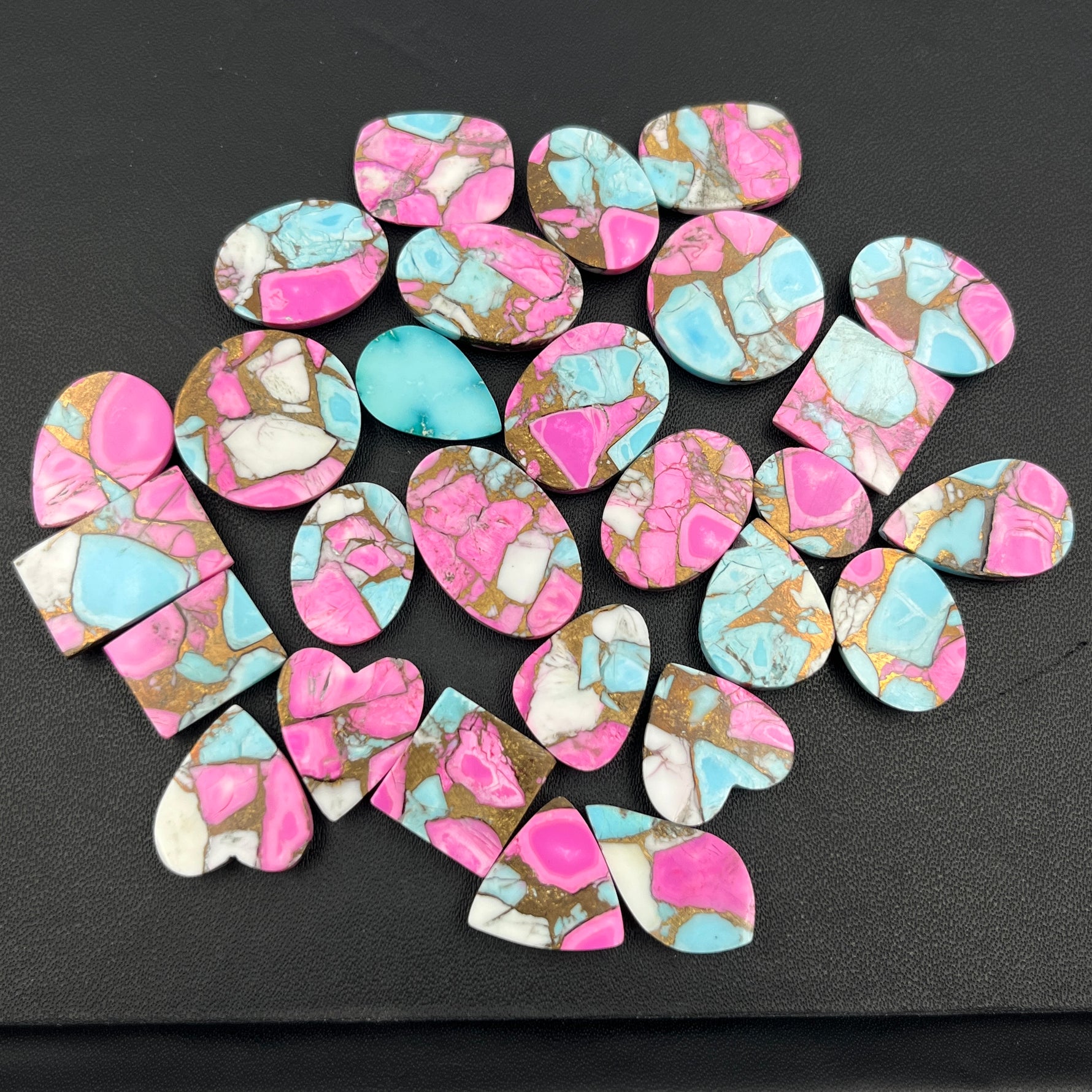We offer a vast selection of over 250 natural gemstones specially all types of turquoise, and we make cabs pairs and rose cut faceted gemstone.
